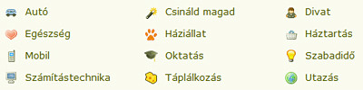 A főoldalon, a főbb funkciókhoz kis ikonokat tettünk, hogy jobban elkülönüljenek az egyéb dobozoktól.