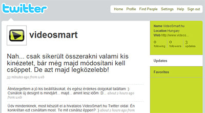 www.twitter.com/videosmart címen érhettek el! Napra-, percre-, sőt másodpercre kész információt itt találhattok arról, ki mit csinál velünk, nálunk és úgy általában. Természetesen te is küldhetsz be rövid bejegyzéseket, mert mi is kíváncsiak vagyunk a te cselekedeteidre!