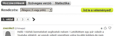 A videó aloldalra, a lejátszó alatt kikerült néhány megosztásra buzdító gombocska (Facebook, Twitter, Startlap), mellyel segítheted népszerűsíteni az oldalt. Ne feledj belenézni a "további opciókba" se! Segítségedet előre is köszönjük.