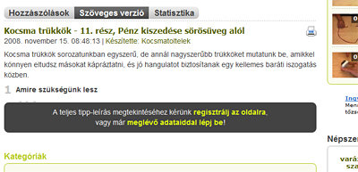 A videó aloldalon áthelyeztük a jobb oldalon található kategóriák listázását a cím alá, hogy jobban el tudjon mindenki igazodni a területek között.