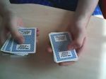 Ebben a trükkben én és a néző is húz egy-egy lapot, majd két különböző helyre teszem vissza őket. A végén mégis egymás mellé kerülnek.